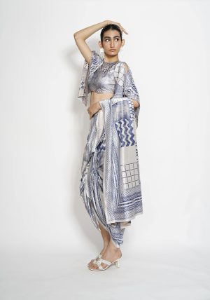 Own the spotlight in this ultra-stylish handblock printed Azure Glem Crop Top . Crafted in a luxe, lightweight fabric, it features bold, voluminous sleeves that channel high-drama with effortless grace.