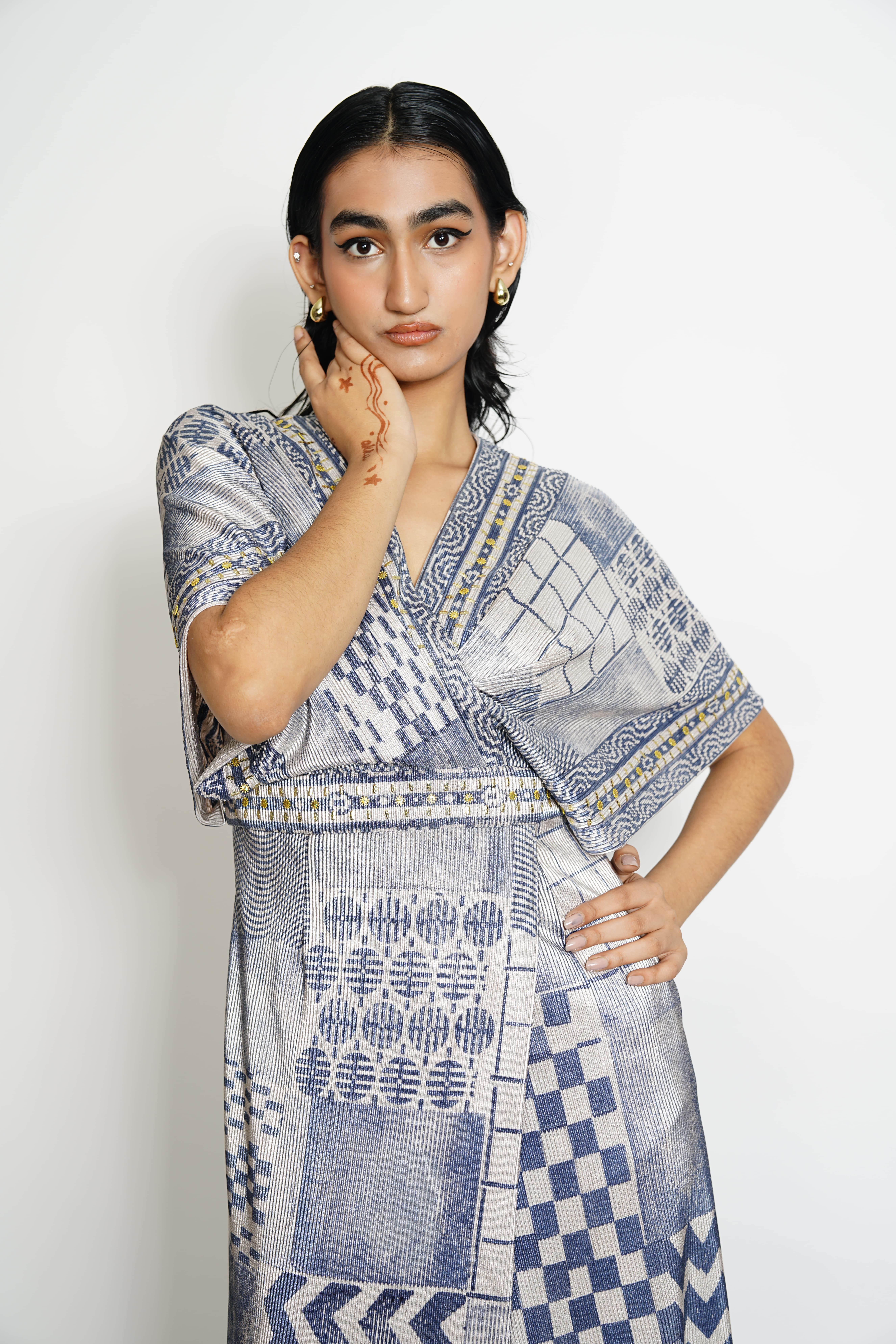 A fusion of indigo dreams and white whispers, crafted with delicate hand block prints and serene leaf impressions. Perfect for breezy summer days in soft linens and cottons. Colour: White/Blue Fabric: Cotton Print: Block print