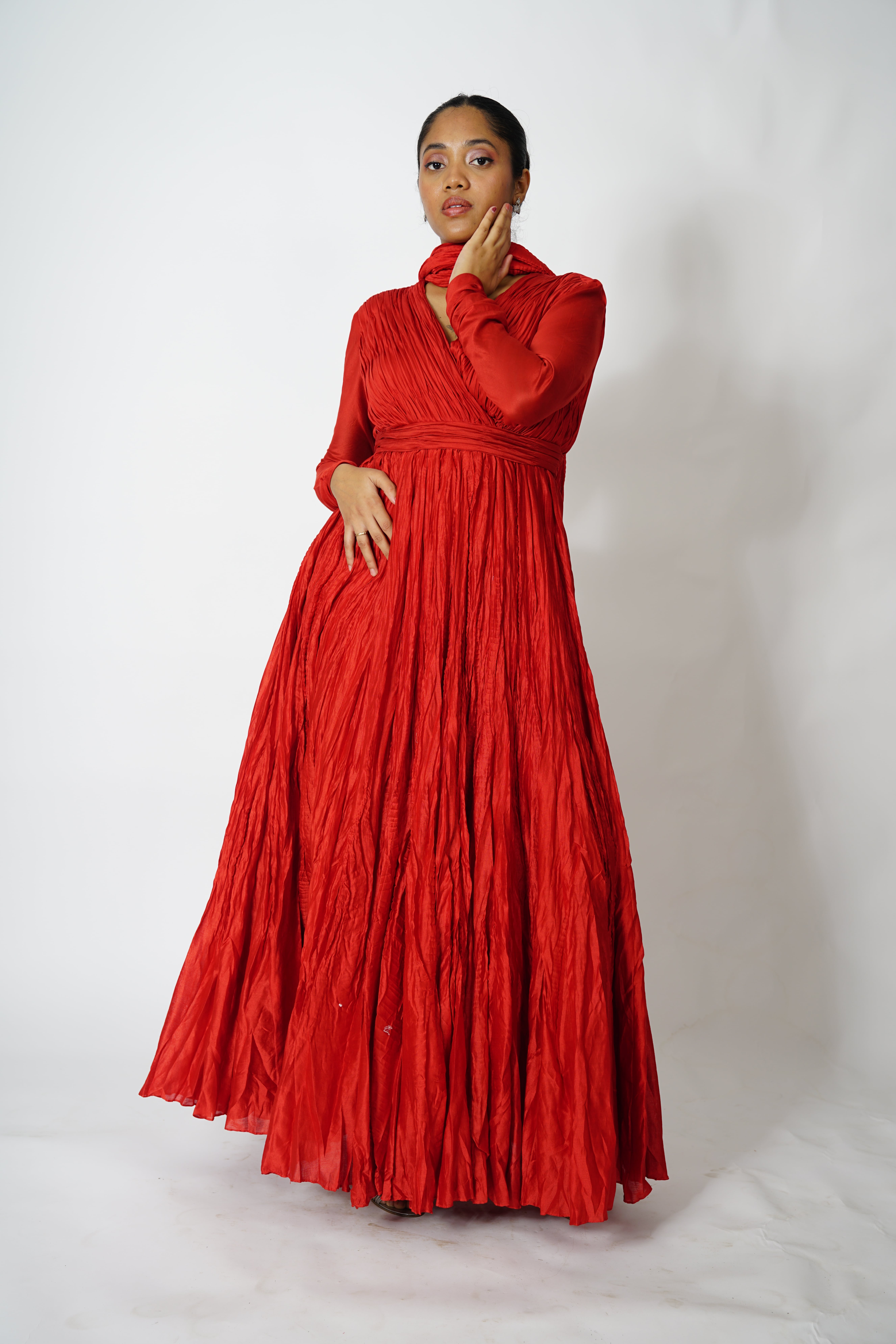 Colour: Blue Fabric: Pleated Metalic Print: Block print Handwork: Handwork