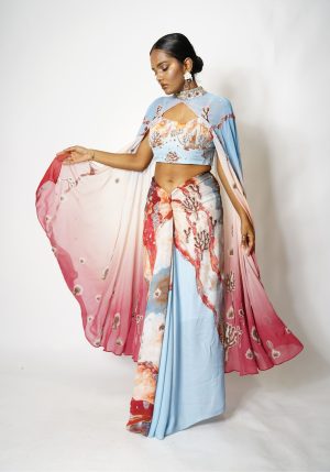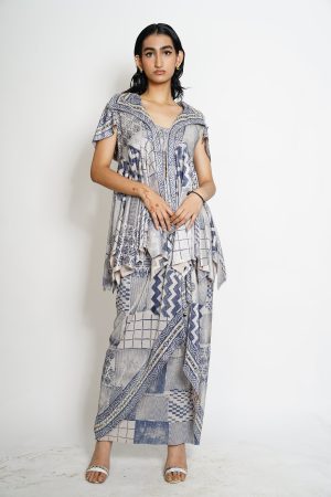 Step into effortless elegance with the Nimbus Maxi Dress, crafted in luxurious linen silk for a soft, breathable, and refined drape. The dress features a digitally printed canvas elevated with intricate hand embroidery, creating a perfect harmony of modern artistry and timeless craftsmanship.