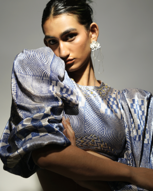 Make a statement with the Nimbus Three Pc Cape Set, where fluid layers meet intricate detailing. Crafted with a digitally printed base adorned with delicate hand embroidery, this ensemble combines effortless drape with artisanal craftsmanship.