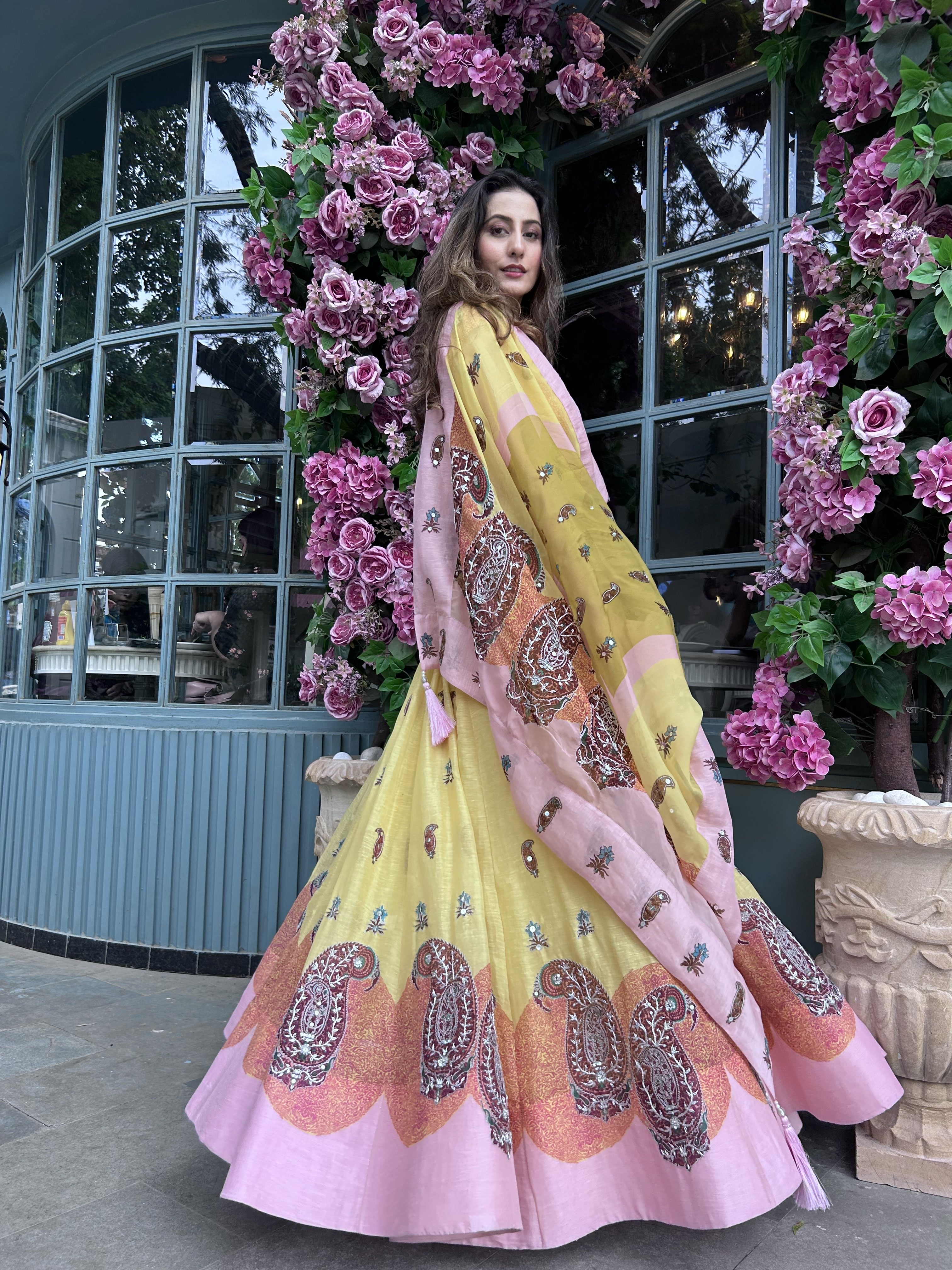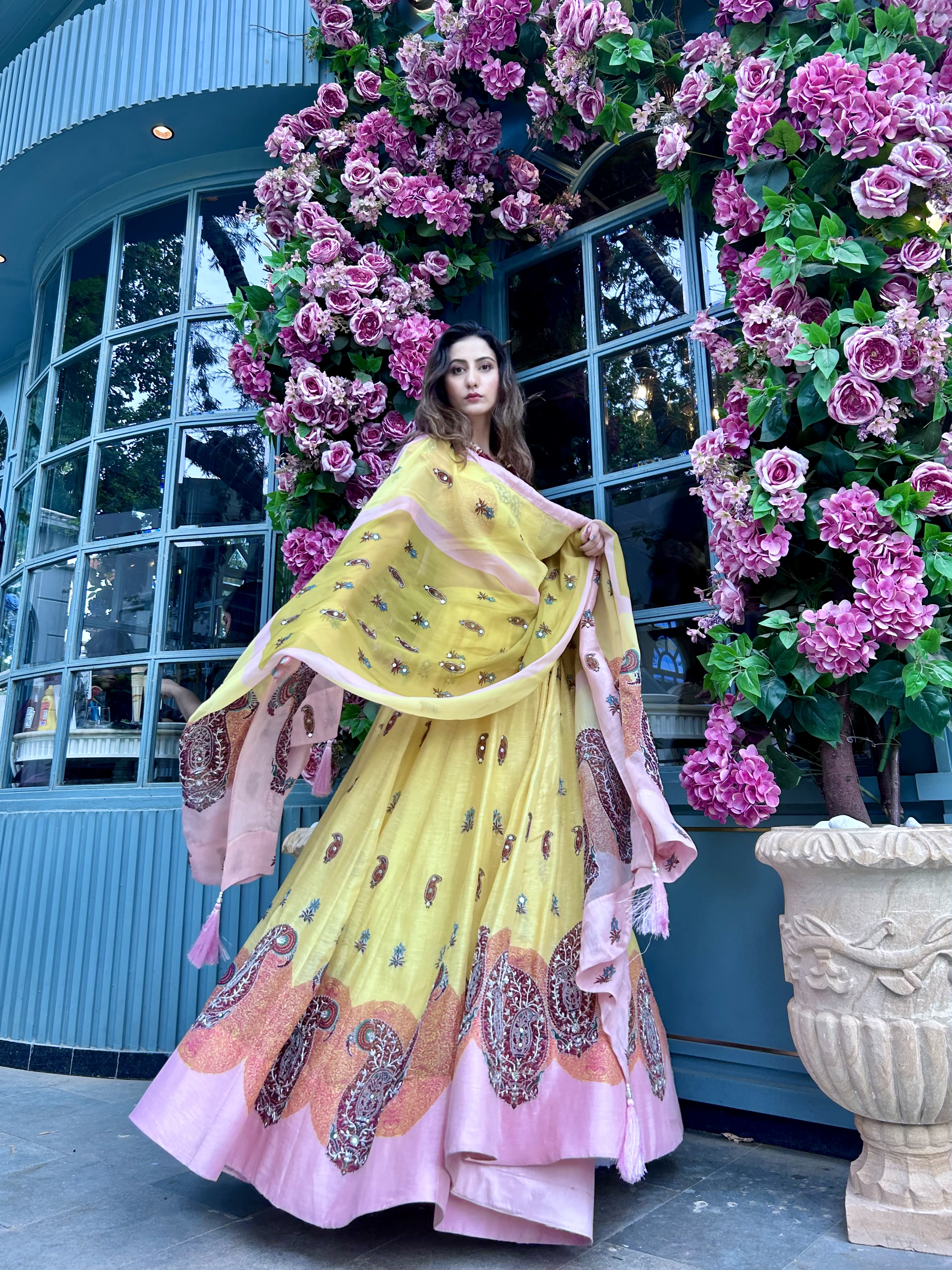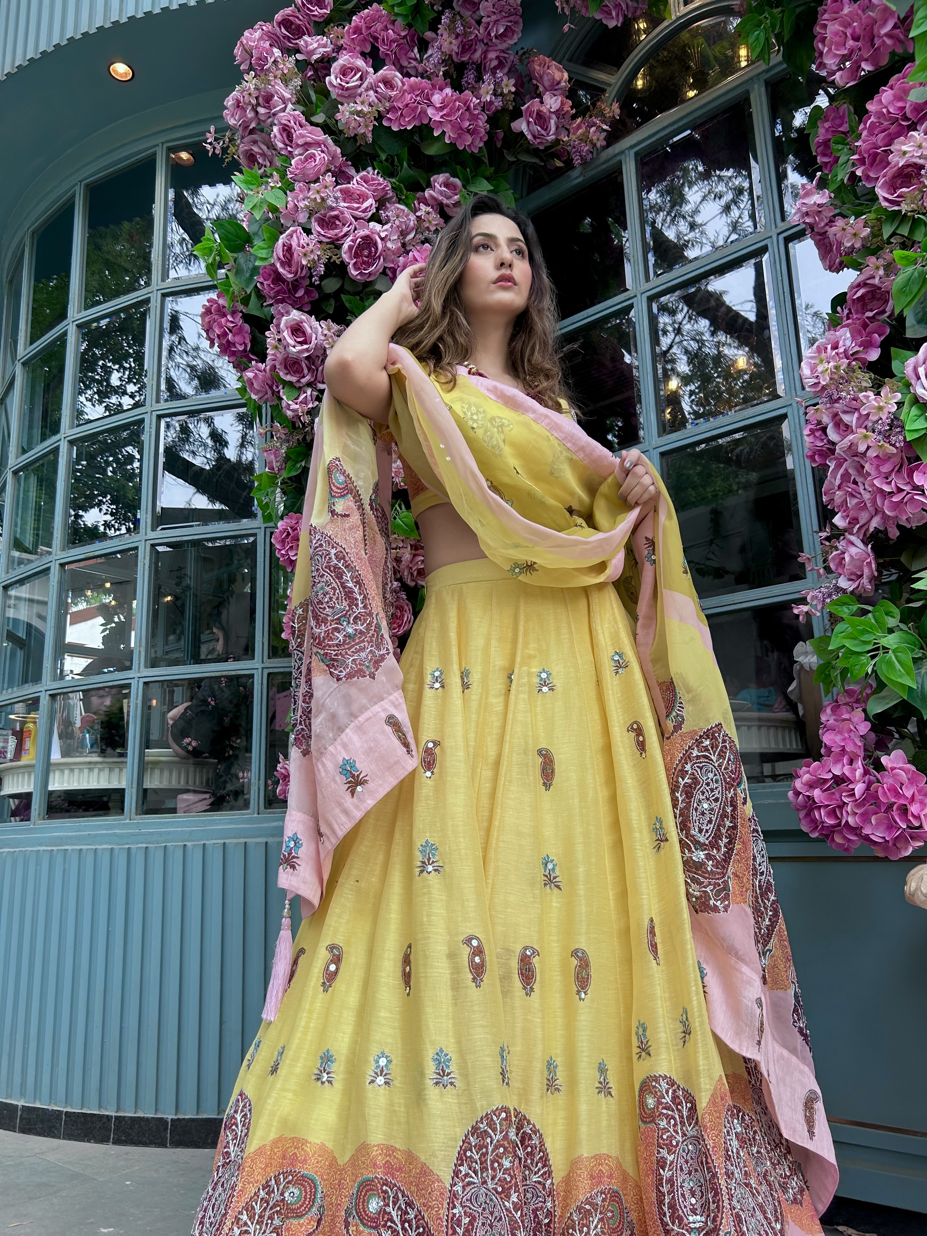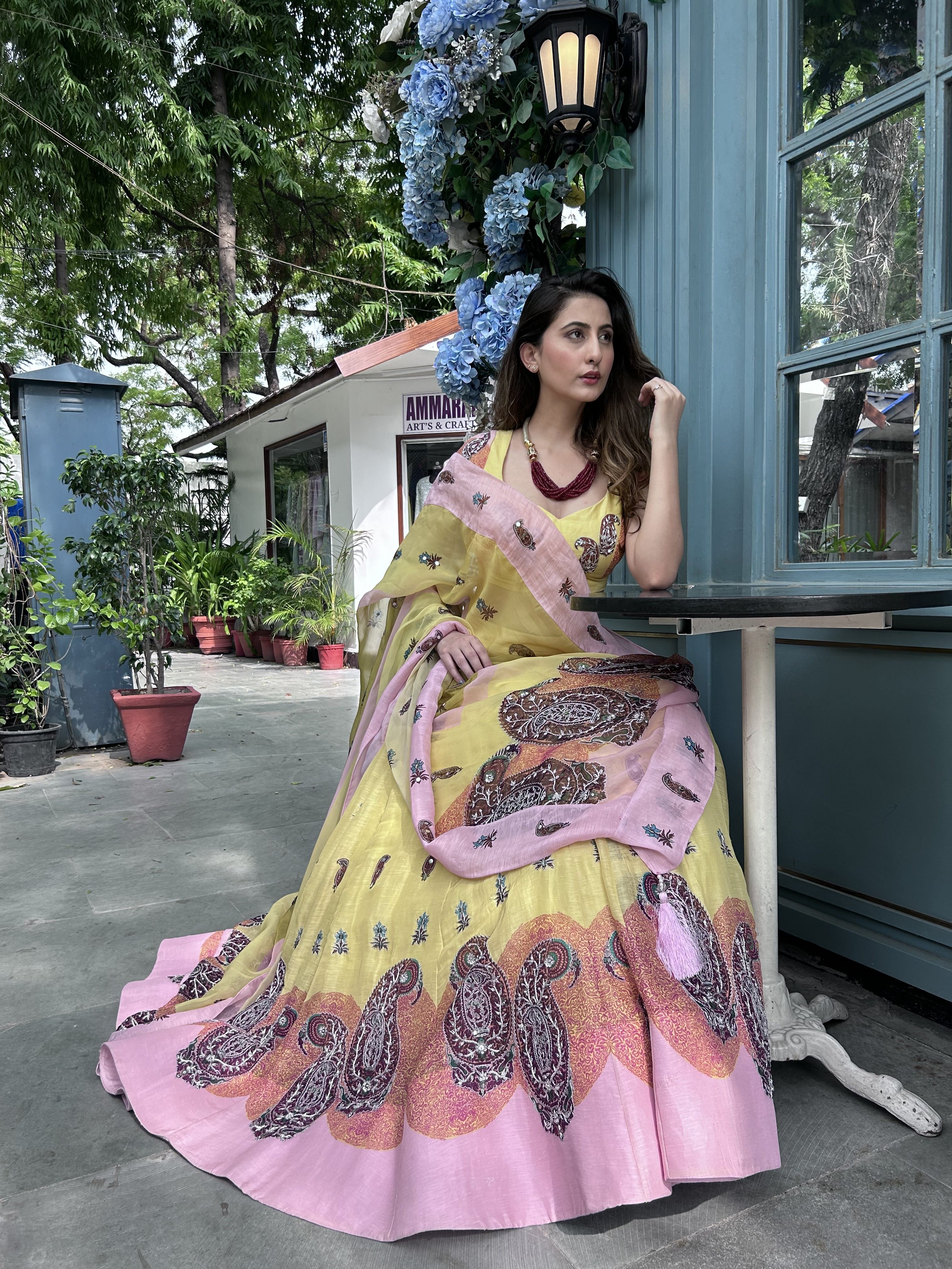 Eka Tara Lehenga: The Eka Tara Lehenga marries meticulous hand block prints with the timeless elegance of lehengas, crafted for moments that demand grace and grandeur.